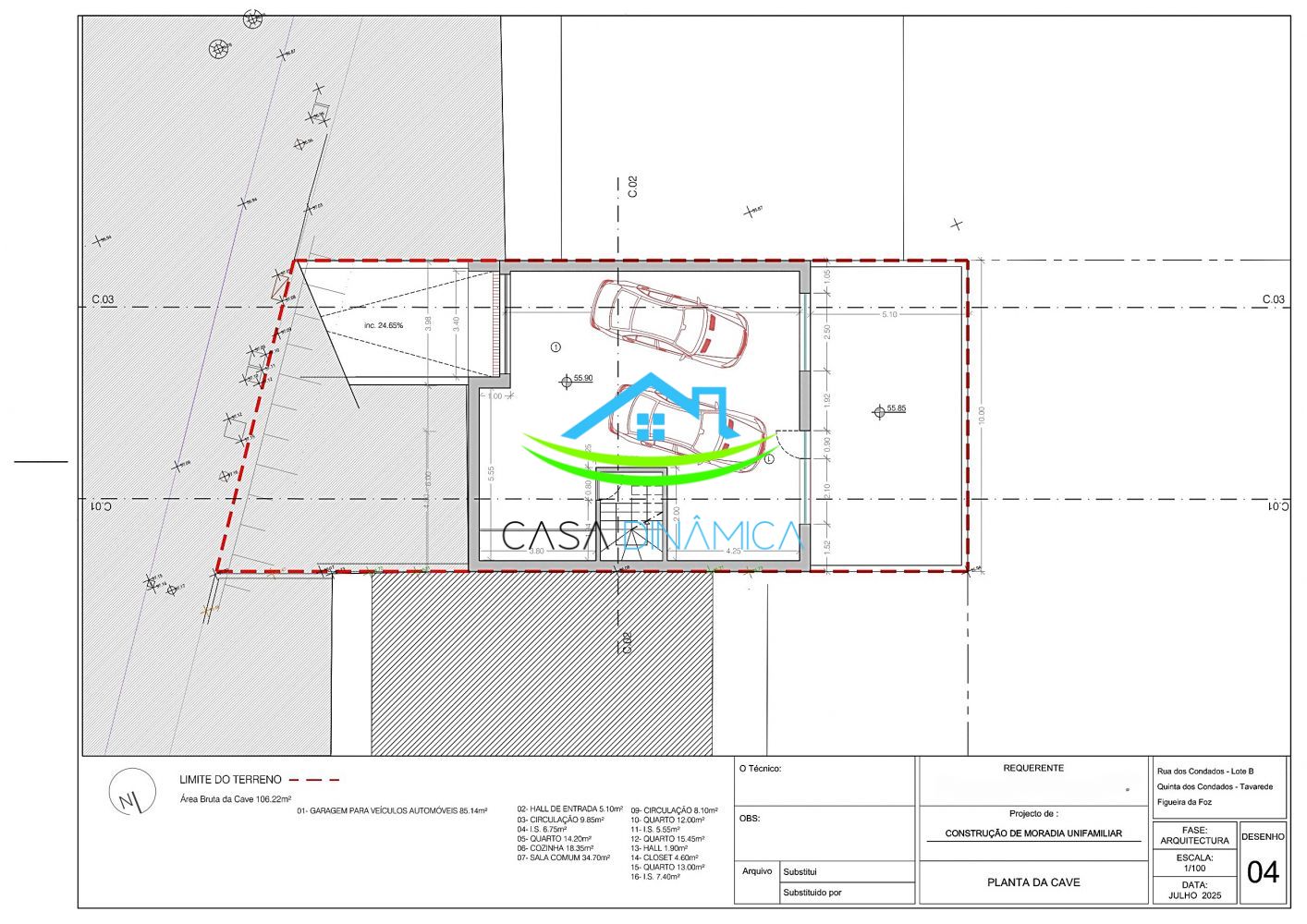 Oportunidade única: Vende-se lote de terreno com projeto de moradia moderna aprovado pela Câmara Municipal, pronto para o seu projeto de construção. Construção simplificada: Evite o longo e complexo processo de elaboração e aprovação de projeto. Basta levantar a licença de construção e começar a obra. Localização privilegiada: Situado nos Condados - Tavarede, zona calma e residencial, com excelentes acessos, próximo de serviços, comércio e escolas. Projeto moderno: O projeto inclui uma moradia unifamiliar de três pisos (cave, rés do chão e primeiro andar), área total do terreno 230m², área de implantação de 110 m² e área bruta de construção de 320 m², otimizada para máximo aproveitamento do espaço e luminosidade. Possibilidade de dar-mos orçamento para a construção. A cave/garagem tem uma área de 106 m2. O rés do chão é composto por: hall de entrada com 4 m2, wc de serviço com 6 m2, cozinha e sala em open space com 45 m2, um quarto com 19 m2 e varandas de acesso a todas as divisões. No primeiro andar encontramos dois quartos com 15 e 14 m2, uma suite com 16 m2 com um closet de 4,5 m2, uma wc de serviço com 5 m2 e anda varandas em todas as divisões. Com jardim na frente da moradia e ainda um pequeno quintal nas traseiras para desfrutar de momentos de lazer com família ou amigos. Vantagens da localização: Desfrute de um estilo de vida tranquilo, com segurança e qualidade de vida, em sintonia com a natureza, mas perto de tudo o que necessita. Entre em contacto hoje mesmo para obter mais informações ou agendar uma visita. Não perca esta oportunidade de construir o seu lar de raiz com todo o conforto e segurança! A Casa Dinâmica – Mediação Imobiliária Lda É uma imobiliária situada em Buarcos – Figueira da Foz. Com a nossa vasta experiência no ramo, acompanhada pelo nosso dinamismo, colocamos ao dispor dos nossos clientes todos os nossos serviços, como já é habitual. Tratamos do seu processo de crédito habitação e de todo o processo bancário de aquisição do imóvel, do primeiro ao último detalhe com o profissionalismo e idoneidade que nos compete. Estamos situados nesta bela cidade que é um concelho geograficamente privilegiado, com mar, serra e o rio Mondego. A 39Km Coimbra A 125Km Porto A 190Km Lisboa A mesma possui praias com distintas condições naturais para que pratique o seu desporto favorito, tais como: vela, surf, windsurf, kitesurf, jet ski, e bodyboard. Com eventos desportivos e culturais a acontecer todo o ano não pode deixar de querer viver aqui e conhecer melhor toda a região. Temos então o tão famoso carnaval da Figueira da Foz, o São João, o RFM Somnii, a feira medieval, o campeonato de rugby, o futebol praia, o triatlo, as regatas, e as provas de remo, entre tantas outras atividades e eventos. Com uma ciclovia e um calçadão únicos permitindo assim a prática de desportos ao ar livre e em segurança e ainda com um skatepark seguro e único. Com a serra da Boa viagem preparada para a prática de desportos mais radicais tais como : Asa delta, trailer, caminhadas, BTT e Downhill. O concelho tem um população de cerca de 60 mil habitantes tendo ao dispor um Hospital Distrital, e uma vasta rede de cuidados de saúde. Na cidade existe ainda uma rede de alojamento diversa tais como, hotéis, hostels, alojamento local, parque de campismo e turismo de habitação. Encontra ainda na cidade o famoso Casino, centro de artes e espectáculos, museu municipal Dr. Santos Rocha, Forte de Santa Catarina, Palácio Sottomayor e as belíssimas Salinas e o museu do sal situados do outro lado da ponte. A nível cultural e lazer existem vários pontos com igrejas e capelas e vários espaços comerciais. A Figueira da Foz é uma cidade em que todos os meses acontece algum evento. Com excelentes restaurantes para degustar os melhores pratos da região, tais como feijoada de búzios, arroz de marisco, rodízio de marisco, caldeirada à pescador e muitos mais… Viver na Figueira da Foz, fá-lo-á sentir-se seguro de dia e de noite …. Excelente local para viver, crescer e investir!